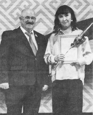 Депутат Госсобрания — Курултая РБ Рамазан Рамазанов сердечно поздравил мелеузовцев и вручил награды. На снимке: с концертмейстером ДШИ №1 г. Мелеуза Эльвирой Наильевной Эргашевой.