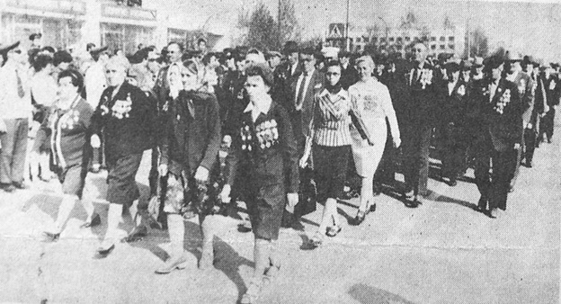 Это им и рядом с ними идущим сегодня в ко­лонне ветеранам — непосредственным участникам тех трудных битв посвя­щают праздничное шествие молодые юнармейцы, уча­щиеся городских школ и училищ, отдавая клятву вер­ности боевым традициям своих  дедов.