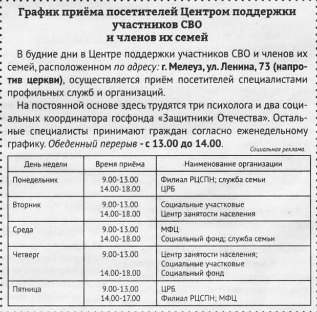 Работа Центра поддержки участников СВО в Мелеузе — наглядный пример, как эта установка воплощается в жизнь. А поставленная Главой республики Радием Хабировым задача открыть такие центры в каждом муниципалитете говорит о том, что система помощи будет только развиваться. Чтобы герои не оставались один на один со своими проблемами, а наш долг не остался только словами.