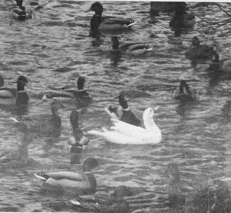 Мысль о том, что она жила в ближайшем подворье, не покидала меня. И вот какие думы одолевали: утка-то непростая, со своими желаниями и взглядами на жизнь. По моим представлениям, она была обычной домашней индоуткой, и жизнь её проходила в замкнутом дворе с небольшим курятником-сараем, где каждый день был предсказуем, а конец — предопределён. Но нет, не такой жизни она хотела! Она мечтала о свободе, о воле, о жизни среди диких соплеменников, мечтала чувствовать воду и видеть гораздо больше, чем её домашние собратья. План побега, видимо, зрел в её голове давно. И, выждав удобный момент, она либо выскользнула за калитку, либо, ненадолго поднявшись на крыло, перелетела через забор и устремилась к реке, к диким сородичам. Уверен, оставшиеся домашние индоутки лишь на секунду оглянулись ей вслед и тут же забыли, вернувшись к своей однообразной жизни. А наша индоутка родилась с характером твёрдым, как сталь, и выбрала ту жизнь, о которой мечтала. Дикие кряквы приняли её в семью. Поначалу она держалась особняком, но потом влилась в коллектив, и сегодня ничем не отличается от них повадками. Единственное — её чисто белое оперение заметно издалека и притягивает взгляд.