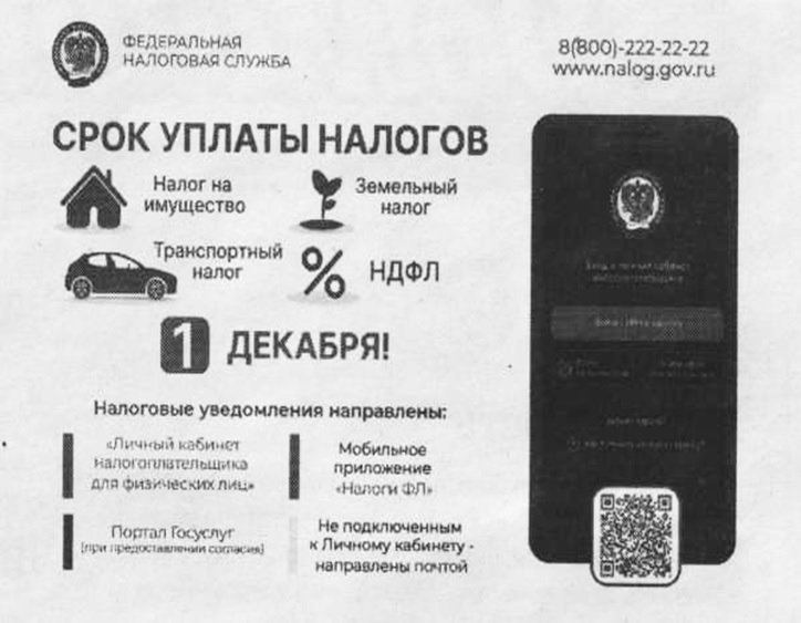 НАПОМИНАЕМ, срок уплаты имущественных налогов за 2024 год — 1 ДЕКАБРЯ 2025 года.